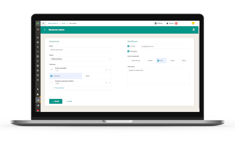 Automatické alerty vám budou hlídat tok v produktových výběrech. Libovolné podmínky dále zajišťují doručení vždy přesných informací.